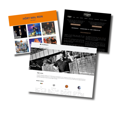 Wir kümmern uns um den Auftritt rund um die Musik: Webseiten, Online-Ticketing, Posts, Plakate, Roll-Ups, Merch und Online-Shops. Unkompliziert und so gedacht, dass es im Bandalltag funktioniert. Ihr konzentriert euch auf die Auftritte auf der Bühne. Um die anderen Auftritte kümmern wir uns. So entsteht ein stimmiger Gesamtauftritt, der zur Band passt und wiedererkennbar bleibt – online, auf der Straße und überall dort, wo Musik sichtbar wird.